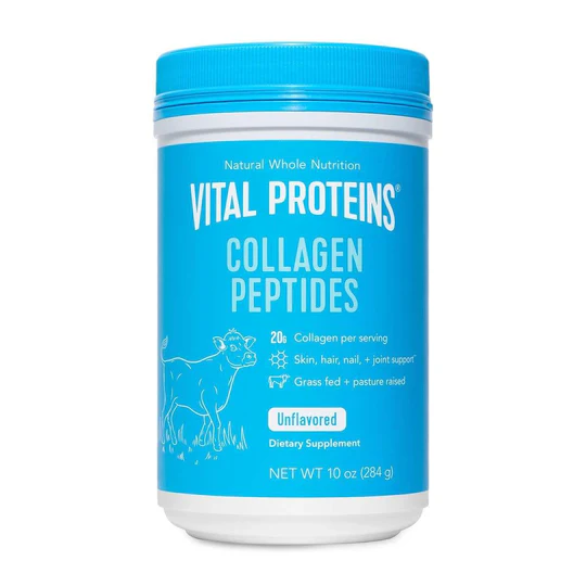 Pure, grass-fed Collagen Peptides powder supports skin elasticity, hydration, and youthful appearance. Promotes joint and cartilage health, gut integrity, and stronger hair and nails. Contains Types I, II, and III collagen. Unflavored and odorless, mixes easily into any beverage or food. Non-GMO, hormone-free. 500g powder (25 servings per container).